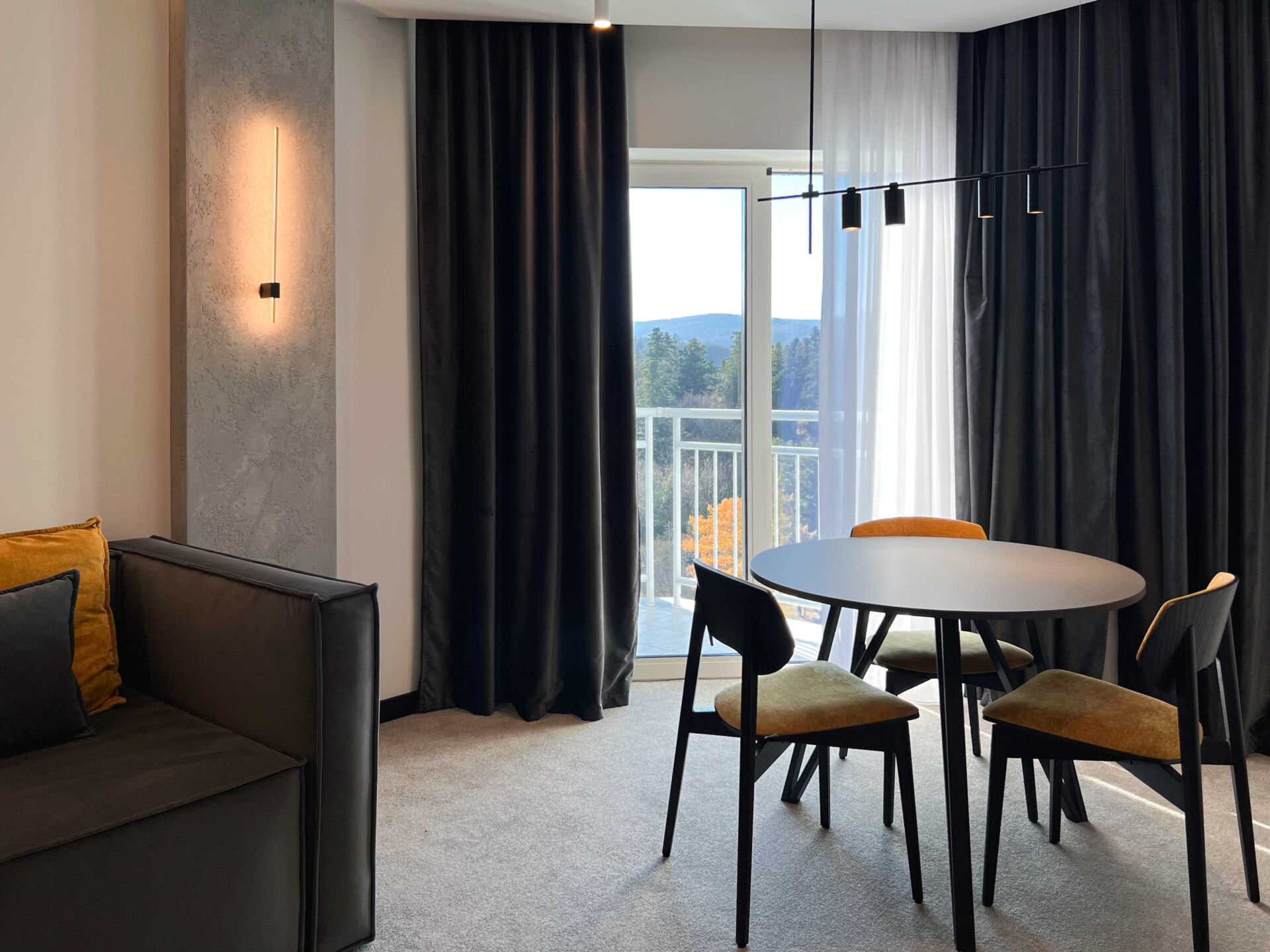 З балкона номера відкривається прекрасний вид на Карпати або курорт Трускавець.