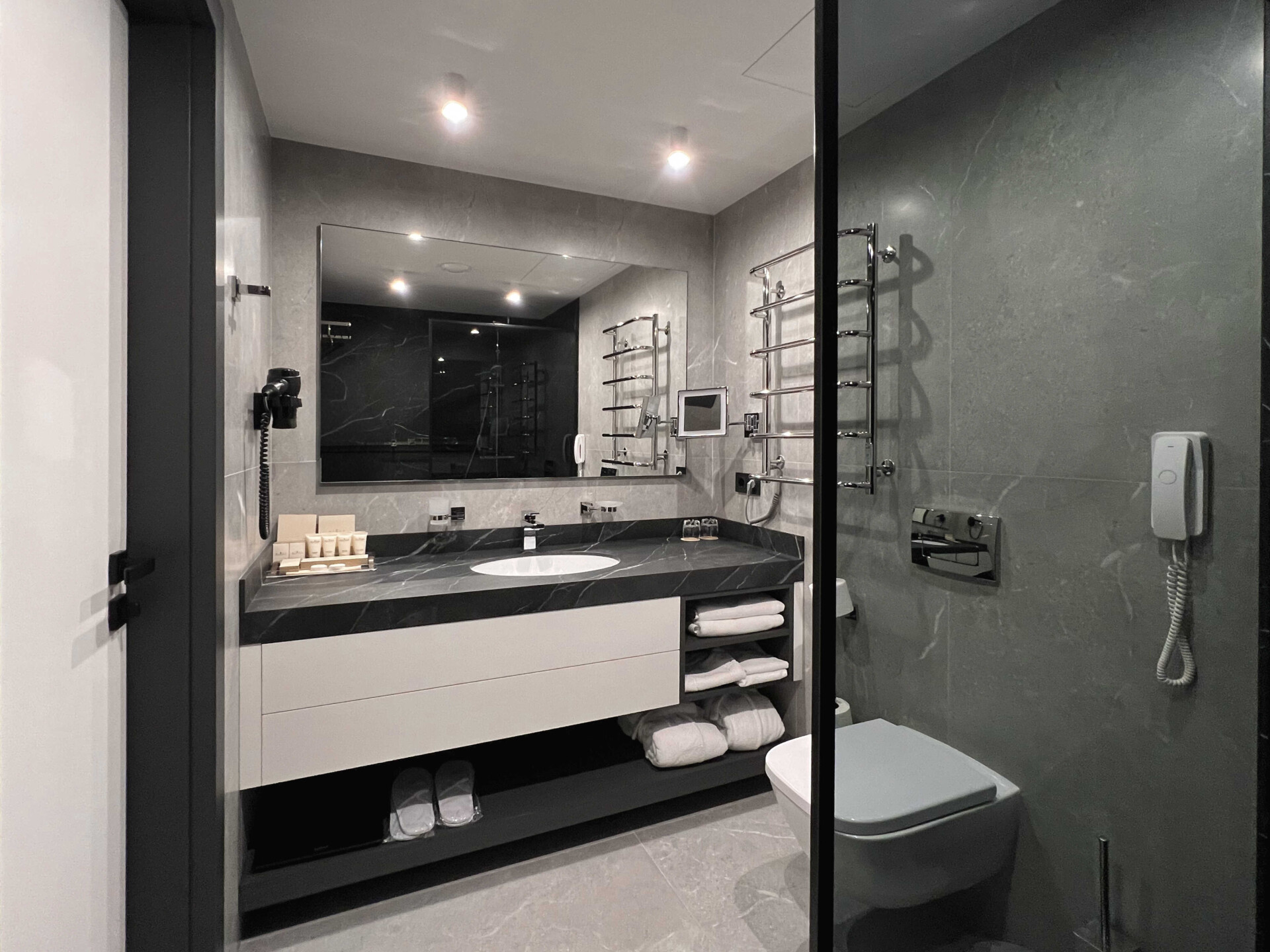 Номер оформлений у приємних світлих тонах з дерев'яною обробкою і предметами інтер'єру. Люкс складається зі спальної кімнати та вітальні, а також коридору та ванної кімнати. У деяких номерах даної категорії два санвузли.